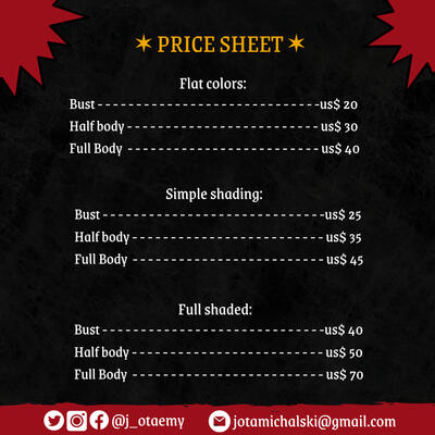 ✔ Will do:Humans, Creatures, Simple background, A portrait of you and your loved ones, Couples/ships of any gender, Fanart, Original characters, Gore.✘ Will not do:Fetishes, Hateful art, Mechas, Complex background, Genitals.
